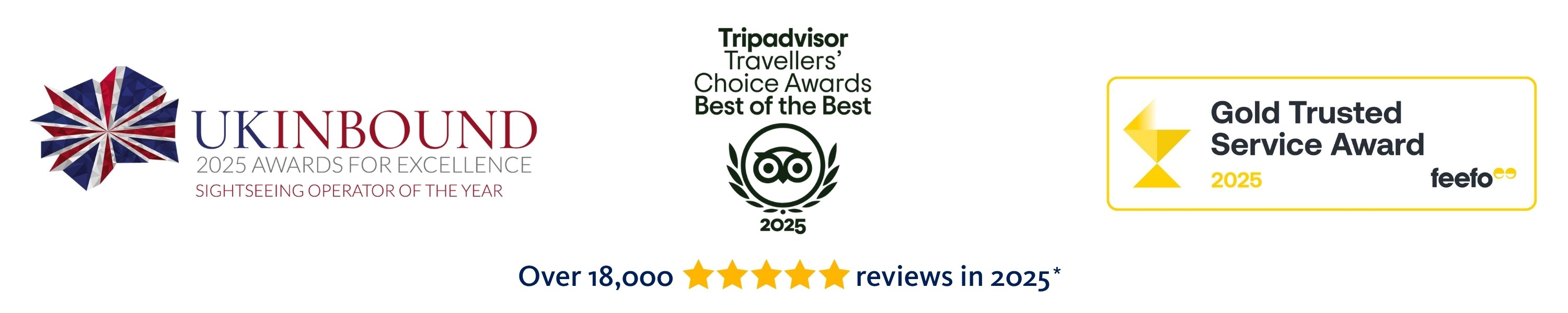 * Reviews received in 2025 via TripAdvisor, Viator, Google, Yelp, Feefo & GetYourGuide